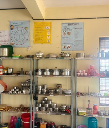 Hita College of Nursing has state of art Nutrition laboratory with all modern amenities for preparing students to prepare various kinds of diets. The nutrition lab is where the students learn to prepare normal and therapeutic diets. Students learn to prepare different types of exhibits for health education related to nutrition and diet therapy. Under the guidance of a qualified dietitian, they learn to prepare normal and therapeutic diet for various age groups, disease condition without losing nutricients. We aspire our student nurses to understand the importance of nutrition and its role in preventing one from deadly diseases.